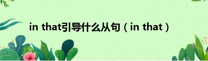 大家好,小活来为大家解答以上的问题。in that引导什么从句,in that这个很多人还不知道,现在让我们一起来看看吧!