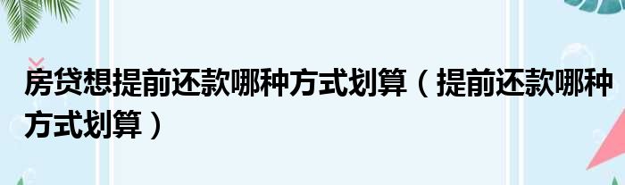 房贷想提前还款哪种方式划算(提前还款哪种方式划算)