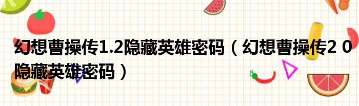 幻想曹操传1.2隐藏英雄密码(幻想曹操传2 0隐藏英雄密码)