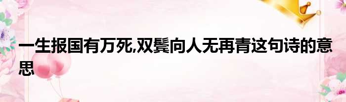 导读 大家好,小活来为大家解答以上的问题。一生报国有万死,双鬓向人无再青这句诗的意思这个很多人还不知道,现在让我们一起来看看吧!1、意思是为