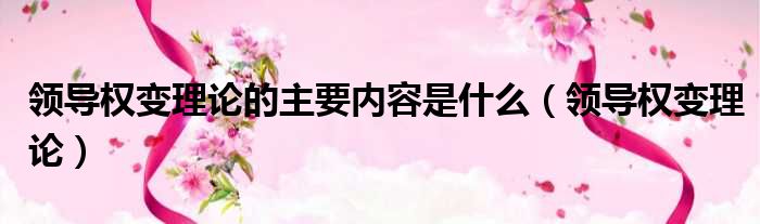 导读 大家好,小活来为大家解答以上的问题。领导权变理论的主要内容是什么,领导权变理论这个很多人还不知道,现在让我们一起来看看吧!1、领导权