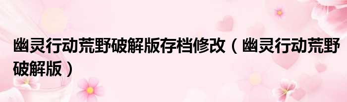 幽灵行动荒野破解版存档修改(幽灵行动荒野破解版)