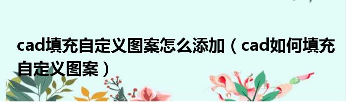cad填充自定义图案怎么添加(cad如何填充自定义图案)