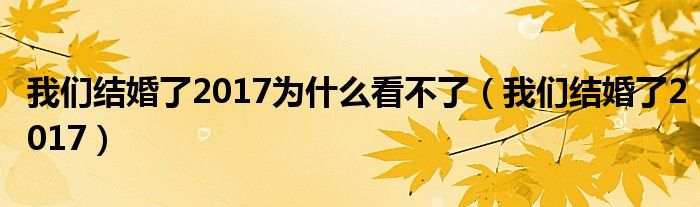 我们结婚了2017为什么看不了(我们结婚了2017)