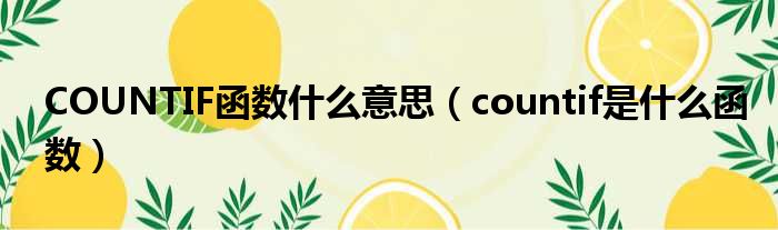 导读 大家好,小活来为大家解答以上的问题。COUNTIF函数什么意思,countif是什么函数这个很多人还不知道,现在让我们一起来看看吧!1、一、意思不