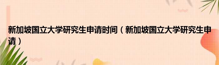 新加坡国立大学研究生申请时间(新加坡国立大学研究生申请)