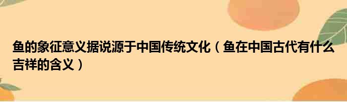 鱼的象征意义据说源于中国传统文化(鱼在中国古代有什么吉祥的含义)