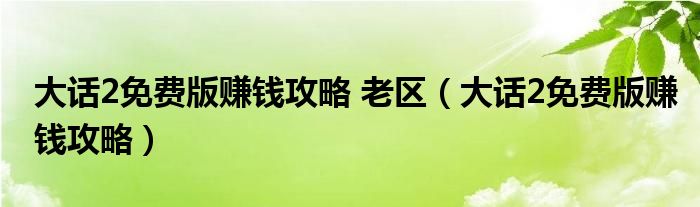 大话2免费版赚钱攻略 老区(大话2免费版赚钱攻略)