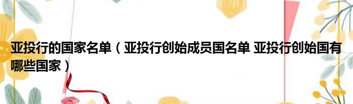 导读 大家好,小活来为大家解答以上的问题。亚投行的国家名单,亚投行创始成员国名单 亚投行创始国有哪些国家这个很多人还不知道,现在让我们一起