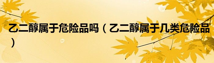乙二醇属于危险品吗(乙二醇属于几类危险品)