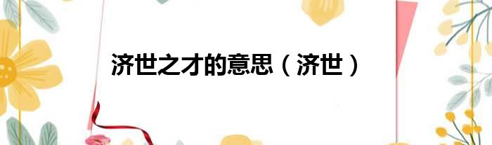 大家好,小活来为大家解答以上的问题。济世之才的意思,济世这个很多人还不知道,现在让我们一起来看看吧!