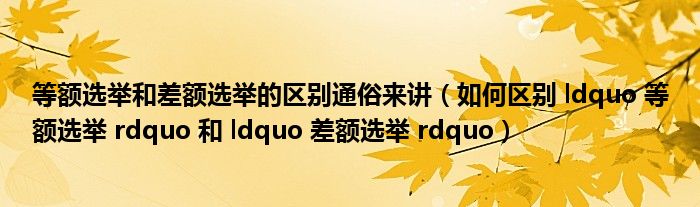 等额选举和差额选举的区别通俗来讲(如何区别 ldquo 等额选举 rdquo 和 ldquo 差额选举 rdquo)