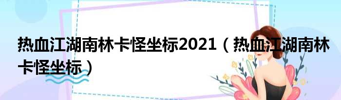 热血江湖南林卡怪坐标2021(热血江湖南林卡怪坐标)