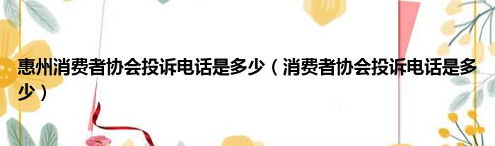 惠州消费者协会投诉电话是多少(消费者协会投诉电话是多少)