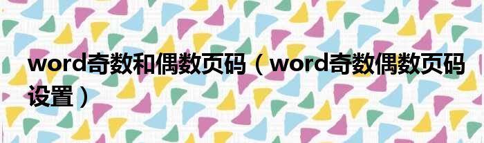 大家好,小活来为大家解答以上的问题。word奇数和偶数页码,word奇数偶数页码设置这个很多人还不知道,现在让我们一起来看看吧!