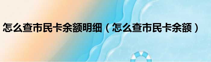 怎么查市民卡余额明细(怎么查市民卡余额)