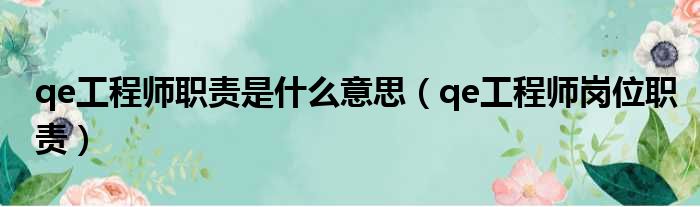 qe工程师职责是什么意思(qe工程师岗位职责)