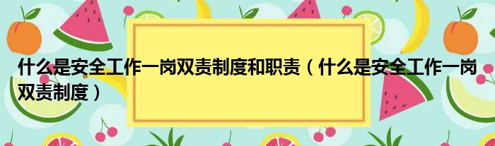 什么是安全工作一岗双责制度和职责(什么是安全工作一岗双责制度)