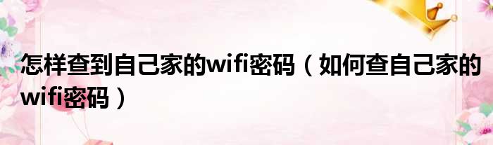 怎样查到自己家的wifi密码(如何查自己家的wifi密码)