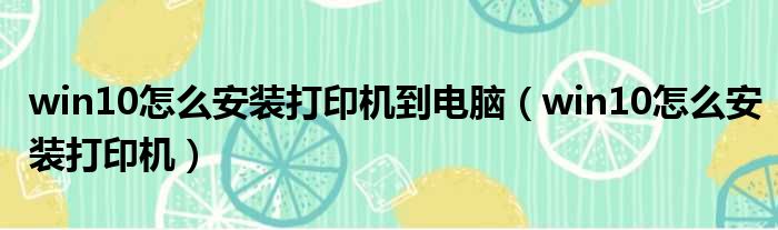 win10怎么安装打印机到电脑(win10怎么安装打印机)