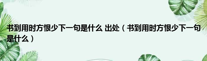 书到用时方恨少下一句是什么 出处(书到用时方恨少下一句是什么)