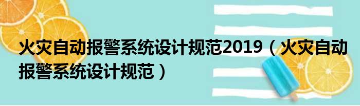 火灾自动报警系统设计规范2019(火灾自动报警系统设计规范)