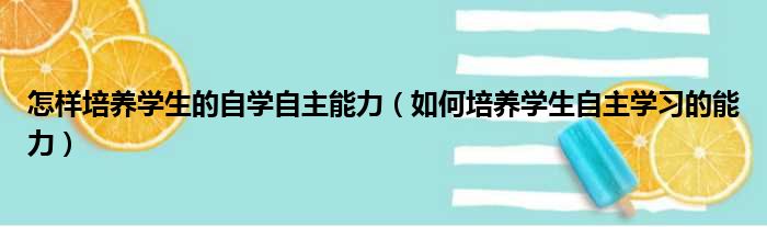 怎样培养学生的自学自主能力(如何培养学生自主学习的能力)