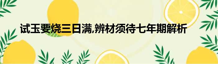 大家好,小活来为大家解答以上的问题。试玉要烧三日满,辨材须待七年期解析这个很多人还不知道,现在让我们一起来看看吧!