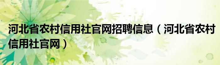 河北省农村信用社官网招聘信息(河北省农村信用社官网)