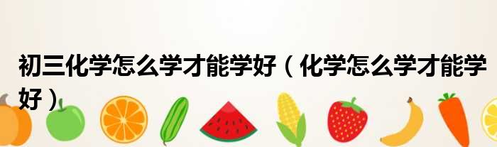 初三化学怎么学才能学好(化学怎么学才能学好)