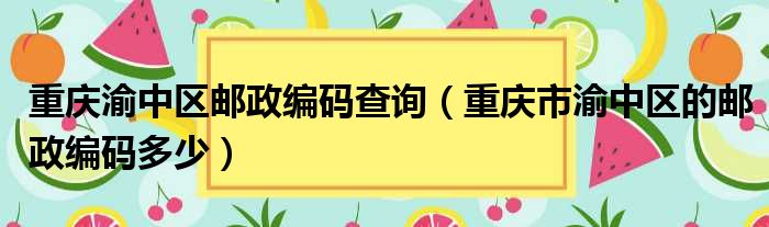 导读 大家好,小活来为大家解答以上的问题。重庆渝中区邮政编码查询,重庆市渝中区的邮政编码多少这个很多人还不知道,现在让我们一起来看看吧!1