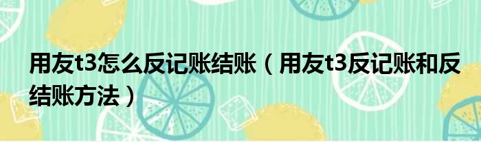 用友t3怎么反记账结账(用友t3反记账和反结账方法)