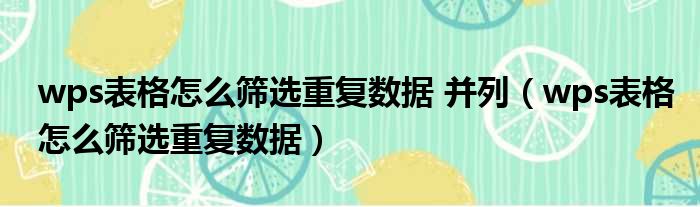 wps表格怎么筛选重复数据 并列(wps表格怎么筛选重复数据)