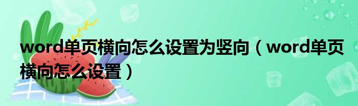 word单页横向怎么设置为竖向(word单页横向怎么设置)