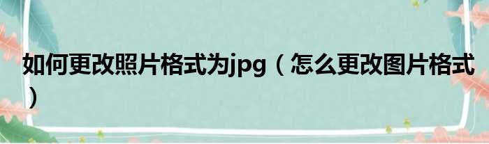 导读 大家好,小活来为大家解答以上的问题。如何更改照片格式为jpg,怎么更改图片格式这个很多人还不知道,现在让我们一起来看看吧!1、上网下载格