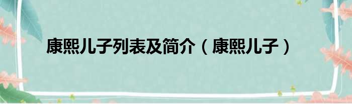 大家好,小活来为大家解答以上的问题。康熙儿子列表及简介,康熙儿子这个很多人还不知道,现在让我们一起来看看吧!