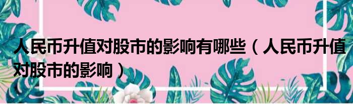 人民币升值对股市的影响有哪些(人民币升值对股市的影响)