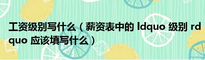 工资级别写什么(薪资表中的 ldquo 级别 rdquo 应该填写什么)