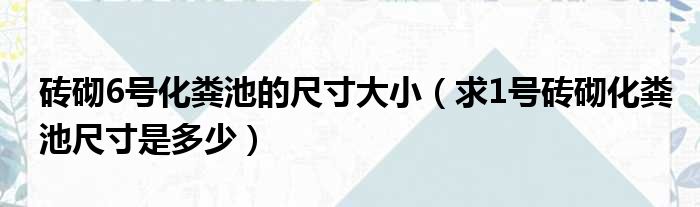 砖砌6号化粪池的尺寸大小(求1号砖砌化粪池尺寸是多少)