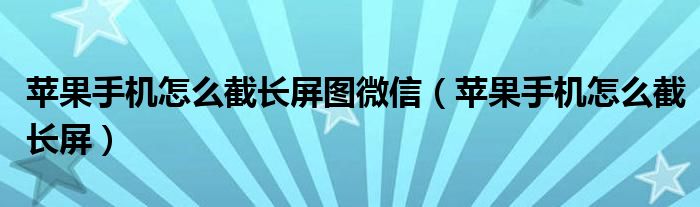 苹果手机怎么截长屏图微信(苹果手机怎么截长屏)