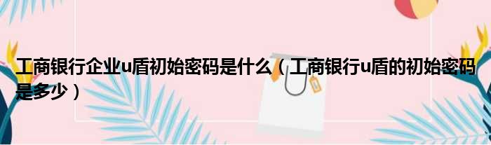 导读 大家好,小活来为大家解答以上的问题。工商银行企业u盾初始密码是什么,工商银行u盾的初始密码是多少这个很多人还不知道,现在让我们一起来看