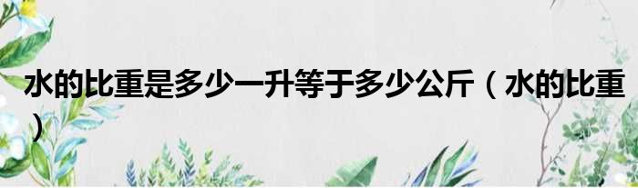 导读 大家好,小活来为大家解答以上的问题。水的比重是多少一升等于多少公斤,水的比重这个很多人还不知道,现在让我们一起来看看吧!1、水的比重=