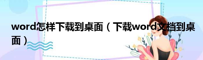 大家好,小活来为大家解答以上的问题。word怎样下载到桌面,下载word文档到桌面这个很多人还不知道,现在让我们一起来看看吧!