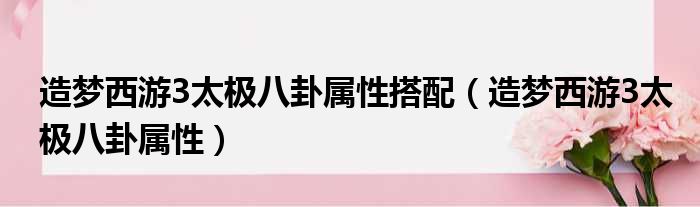 造梦西游3太极八卦属性搭配(造梦西游3太极八卦属性)