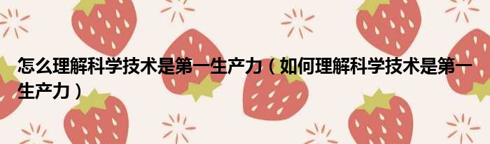 怎么理解科学技术是第一生产力(如何理解科学技术是第一生产力)