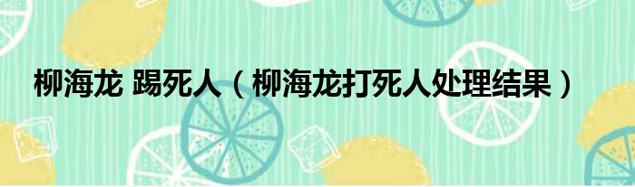 柳海龙 踢死人(柳海龙打死人处理结果)