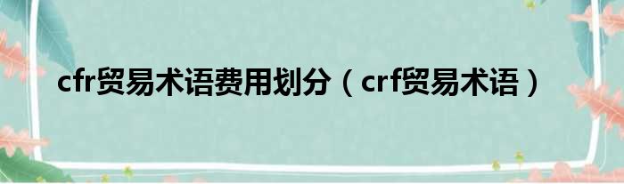 大家好,小活来为大家解答以上的问题。cfr贸易术语费用划分,crf贸易术语这个很多人还不知道,现在让我们一起来看看吧!