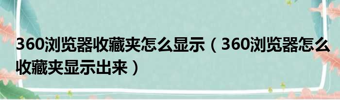 360浏览器收藏夹怎么显示(360浏览器怎么收藏夹显示出来)
