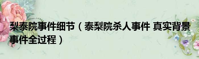 梨泰院事件细节(泰梨院杀人事件 真实背景 事件全过程)