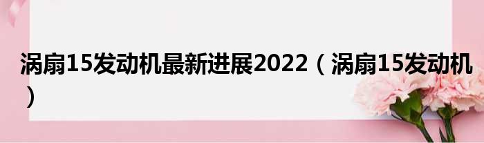 涡扇15发动机最新进展2022(涡扇15发动机)